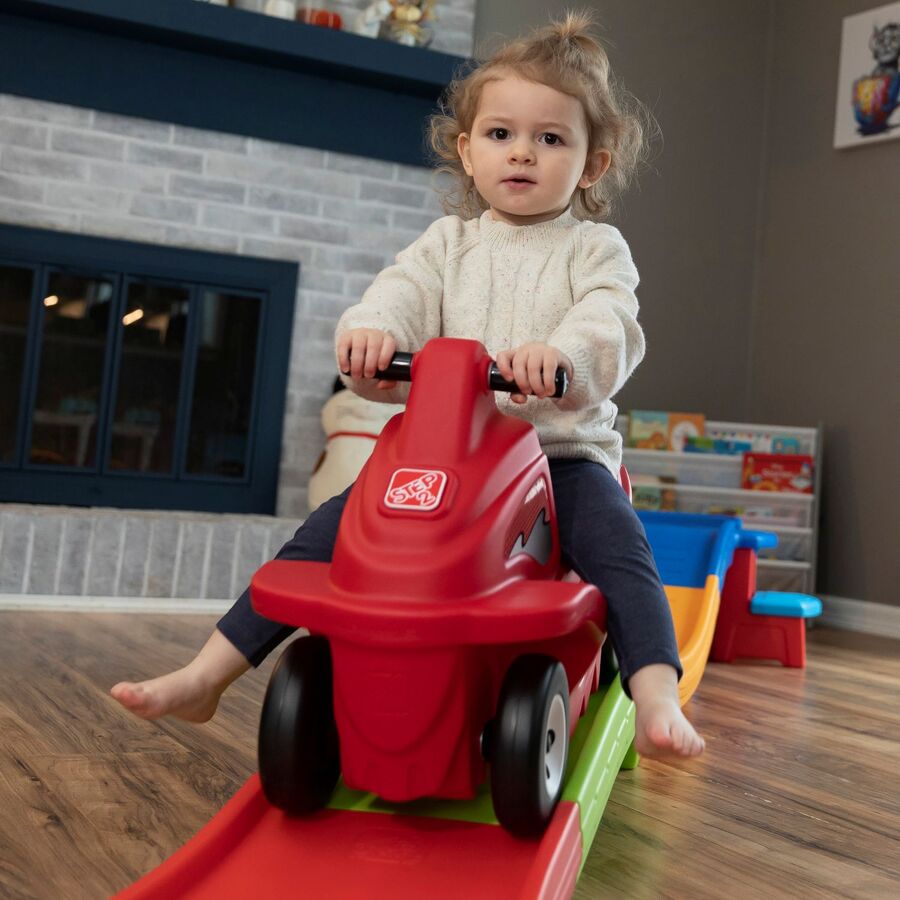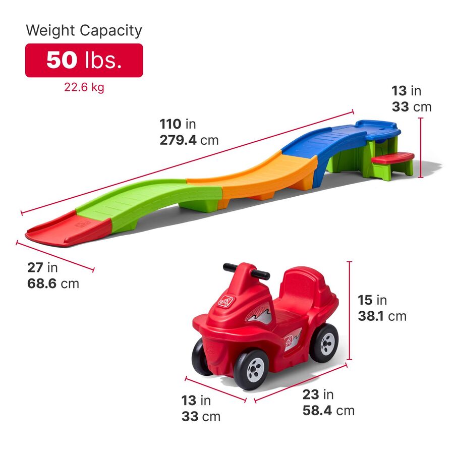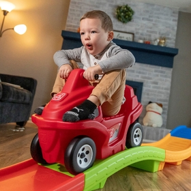 As the first to bring the excitement of a roller coaster to your child’s play space, Step2 roller coaster toys are an exciting addition to any child’s indoor or outdoor play area. Experience the thrills of an amusement park roller coaster anytime with our Up & Down Roller Coaster Rapid Ride & Hide Edition™! Your toddler or preschooler can’t wait to cruise down the included 9 ft. of roller coaster track on the vibrant red ATV-style coaster car! They’ll practice gross motor skills by pushing the coaster car back up onto the platform, as well as balance and hand-eye coordination while rapidly riding down the track. The ATV-style coaster toy car features a high back, handrail, and foot rests for a safe, secure ride down the track; or for use off the coaster track as a riding toy! Kids will ride and then parents can “hide” this roller coaster toy when playtime fun is done– the coaster pieces easily come apart for convenient and compact storage if necessary. Made in the USA of US and imported parts.